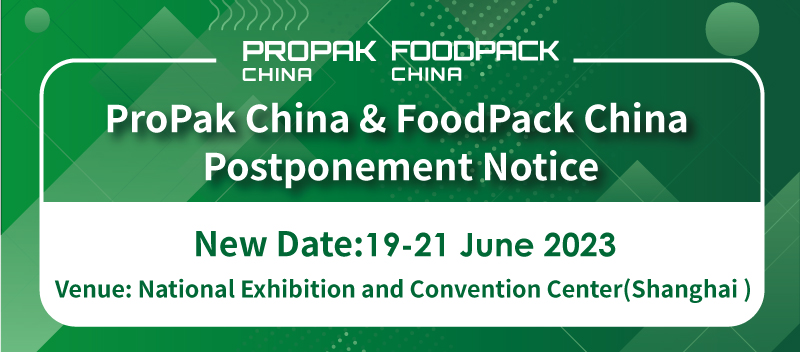 Given the current situation of the pandemic in China, after our active coordination with the related parties, the show team of the 28th International Processing & Packaging Exhibition (ProPak China 2022) and the 22nd Shanghai International Food Processing and Packaging Machinery Exhibition (FoodPack China 2022) announces that ProPak China 2022 and FoodPack China 2022 will now take place on 20-22 November 2022 in Shanghai New International Expo Centre (SNIEC) [Previously scheduled on 8-10 November 2022].