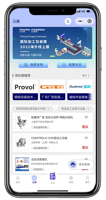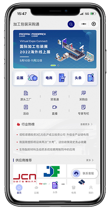 为推动和促进食品和药品产业的交流与贸易合作,“ProPak China & FoodPack China加工包装联展”“P-MEC制药包装展”两大展会整合多年线上线下资源,打通产品供需链路,重磅推出线上供需对接平台【加工包装采购通】小程序,助力参展商“在线对接”、专业观众“在线选品”,帮助双方实现在线商贸洽谈,提升沟通效率及对接精准度!